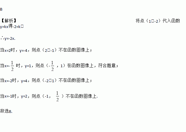 若函数y=kx的图象经过点(1,-2),那么它一定经过点( )