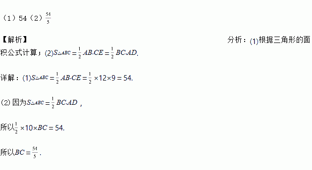 如图,AD,CE是△ABC的两条高;已知AD=10,CE=9,AB=12.