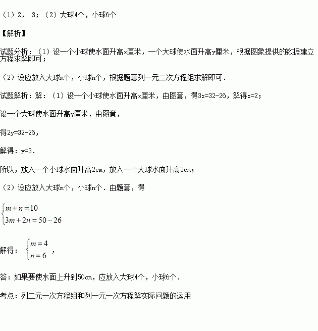 (2)如果要使水面上升到50cm,应放入大球、小球各多少个?