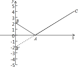 如图,作B关于x轴的对称点B′,连接B′C,与x轴的交点即为点A,此时AB+AC的最小值为B′C的长度,