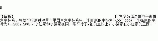 从车站向东走400米,再向北走500米到小红家;从车站向北走500米,再向西走200米到小强家.则( )