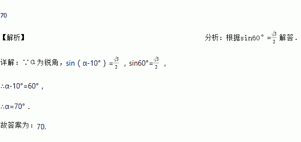 已知α为锐角,且sin(α﹣10°)=,则α等于_____度.