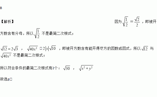 二次根式、、、、中,最简二次根式有几个( )