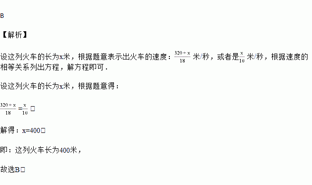 一列匀速前进的火车,从它进入320米长的隧道到完全通过隧道共用了18秒,隧道顶部一盏固定的小灯灯光在火车上照了10秒钟,则这列火车的长为( )