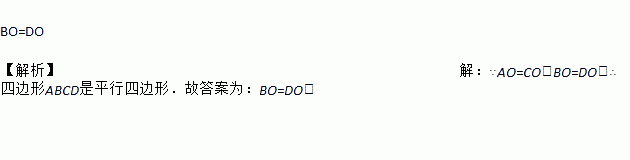 如图,四边形ABCD的对角线相交于点O,AO=CO,请添加一个条件_________