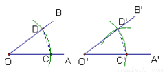 请仔细观察用直尺和圆规作一个角∠A′O′B′等于已知角∠AOB的示意图, 根据图形全等的知识, 说明画出∠A′O′B′ = ∠AOB的依据是 ( ).