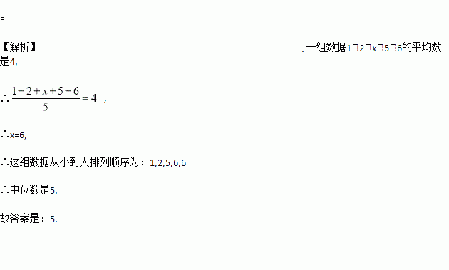 已知一组数据1,2,x,5,6的平均数是4,则这组数据的中位数是______.