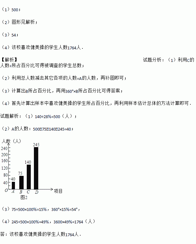 (4)已知该校共有学生3600人,请根据调查结果估计该校喜欢健美操的学生人数.