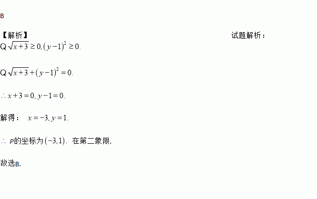 若P的坐标(x,y)满足条件+(y-1)2=0,则点P的位置在( )