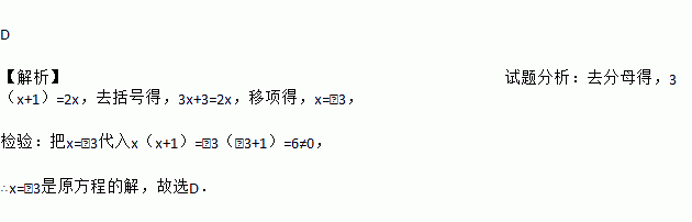 A. x=3 B. x=﹣1 C. x=1 D. x=﹣3