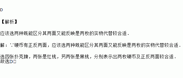 在做“抛掷两枚硬币实验”时,有部分同学没有硬币,因而需要用别的实物来替代进行实验,在以下所选的替代物中,你认为较合适的是( )