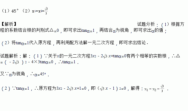 已知:α为锐角,关于x的一元二次方程3x2﹣2x+tanα=0有两个相等的实数根.