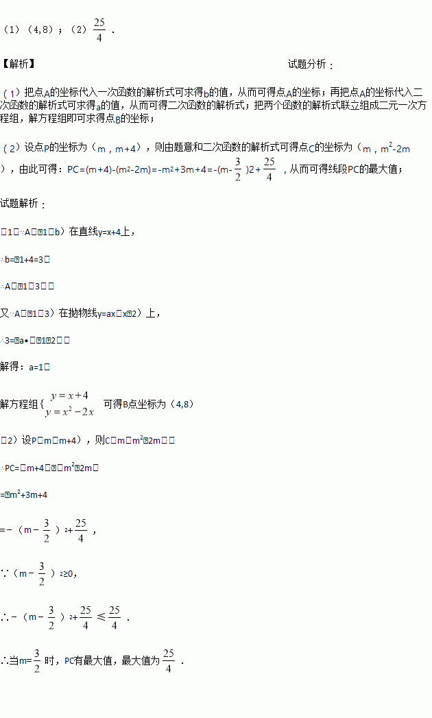 已知一次函数y=x+4的图象与二次函数y=ax(x﹣2)的图象相交于A(﹣1,b)和B,点P是线段AB上的动点(不与A、B重合),过点P作PC⊥x轴,与二次函数y=ax(x﹣2)的图象交于点C.