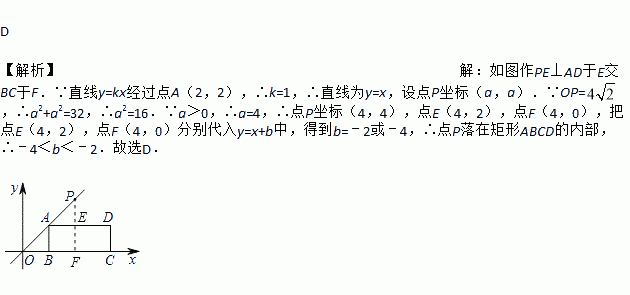 ,将直线y=kx沿y轴向下平移得到直线y=kx+b,若点P落在矩形ABCD的内部,则b的取值范围是( )