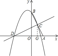分析:(1)首先过C作CD⊥x轴于G.构造△OAB的中位线CG,根据A、B点的坐标及三角形中位线的性质不难求得点C的坐标.由于△ABO∽△ADC,利用相似三角形的性质解得AD的长,那么D点的坐标也就确定.