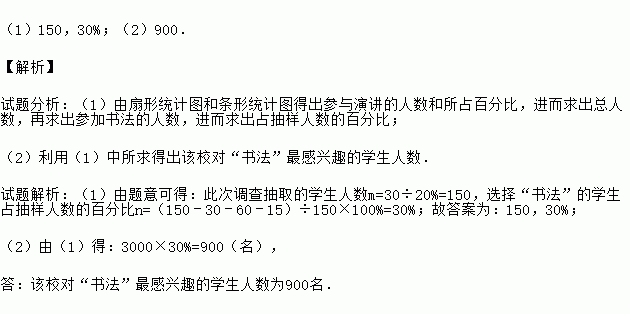 (2)若该校有3000名学生,请根据以上数据估计该校对“书法”最感兴趣的学生人数.