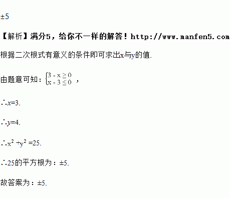 若y=++4,则x2+y2的平方根是_____.
