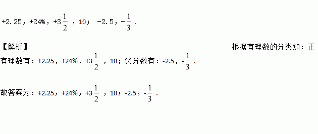 下列各数:-3,-2.5,+2.25,0,+24%,+3, ,- ,10,其中正有理数有________________________;负分数有_______________.