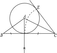 分析:先过点A作BC的垂线,再作∠ECA=∠BCA,同时以C点为圆心,以垂足为到点C的距离为半径画弧交EC于点E,再以点A位半径,以AE长为半径,画圆极为所求.