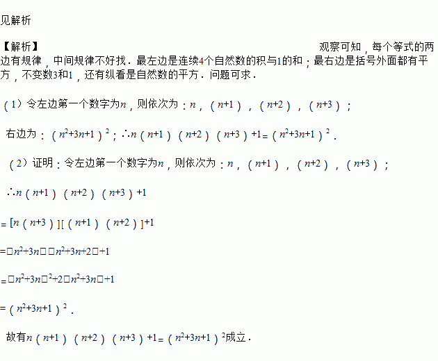 ①1×2×3×4+1=52=(12+3×1+1)2;