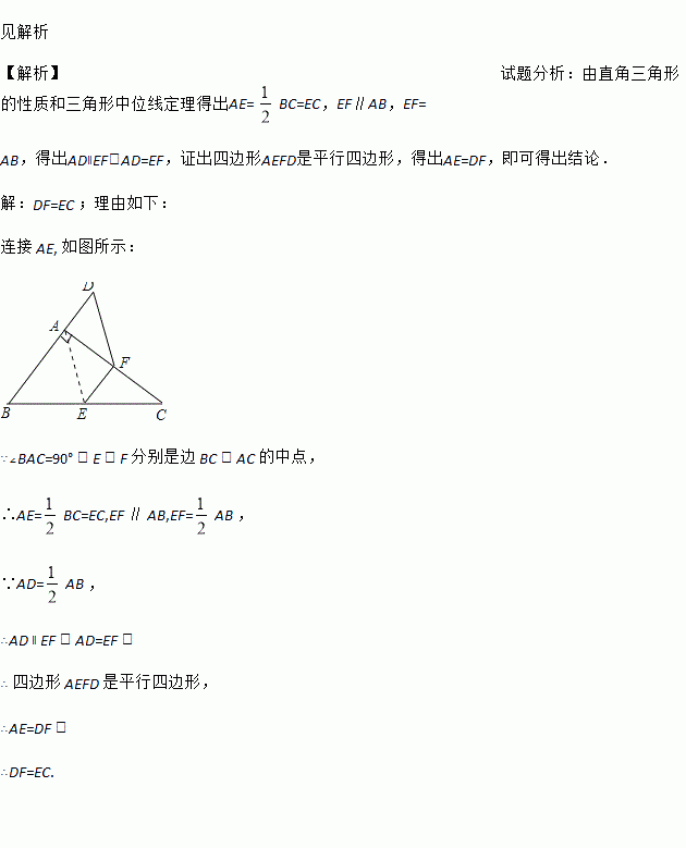 AB,E,F分别是边BC,AC的中点,试猜想DF与EC的数量关系,并证明你的猜想.