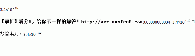 随着人们对环境的重视,新能源的开发迫在眉睫,石墨烯使现在世界上最薄的纳米材料,其理论厚度应是0.00000000034m,用科学记数法表示是________.