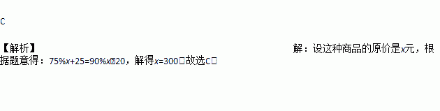 某种商品因换季准备打折出售,如果按原定价的七五折出售,将赔25元,而按原定价的九折出售,将赚20元,则这种商品的原价是( )