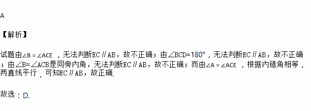 A. ∠B=∠ACE B. ∠A=∠ECD C. ∠B=∠ACB D. ∠A=∠ACE
