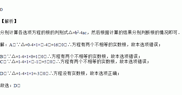 下列一元二次方程中,没有实数根的是( )