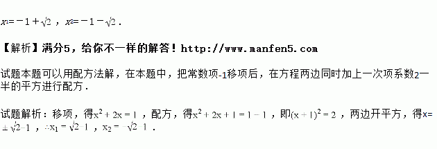 解方程:x2+2x-1=0.