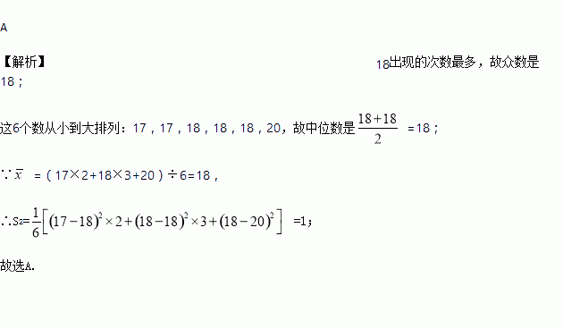 A. 18,18,1 B. 18,17.5,3 C. 18,18,3 D. 18,17.5,1