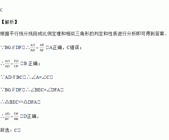 如图,点A,E,F,C在同一条直线上,AD∥BC,BE的延长线交AD于点G,且BG∥DF,则下列结论错误的是( )