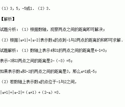 (1)数轴上表示4和1的两点之间的距离是_______ ;表示-3和2两点之间的距离是_____;一般地,数轴上表示数m和数n的两点之间的距离等于|m-n|.如果表示数a和-2的两点之间的距离是3,那么a= ______