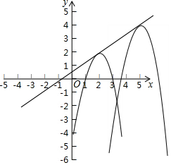 20.已知抛物线C1:y=-x2+4x-3,把抛物线C1先向右平移3个单位长度,再向上平移3个单位长度,得到抛物线C2,将抛物线C1和抛物线C2这两个图象在x轴及其上方的部分记作图象M.若直线y=kx+$\frac{1}{2}$(k≥0)与图象M至少有2个不同的交点,则k的取值范围是0≤k<10-$\sqrt{86}$.分析 首先配方得出二次函数顶点式,求得抛物线C1的顶点坐标,进而利用二次函数平移规律得出抛物线C2,求得直线与两个抛物线相切时的k的值,即可解决问题.
