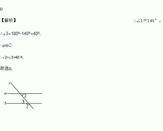 如图,直线a,b被直线c所截,a∥b,∠1=140°,则∠2的度数是( )