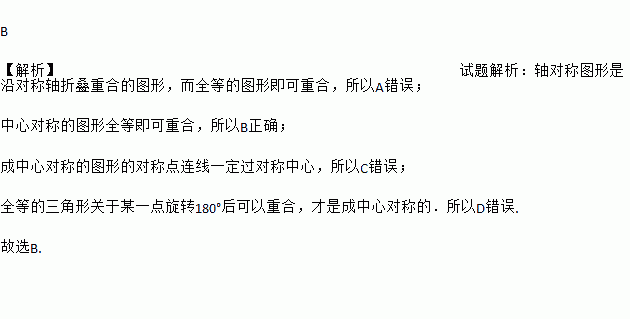 D. 两个会重合的三角形一定关于某一点成中心对称