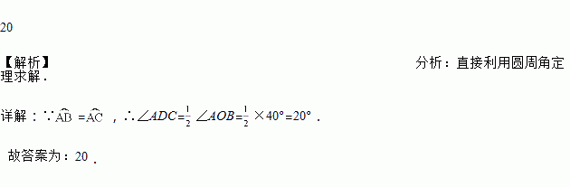 如图,点A,B,C,D分别在⊙O上,,若∠AOB=40°,则∠ADC的大小是_____度.