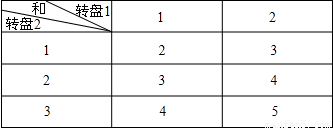 由上图可知,所有等可能的结果有6种:1+1=2,1+2=3,1+3=4,2+1=3,2+2=4,2+3=5.