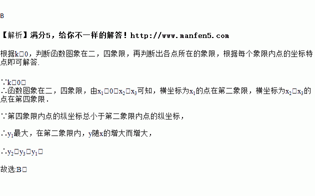 A. y1<y2<y3 B. y2<y3<y1 C. y1<y3<y2 D. y3<y2<y1