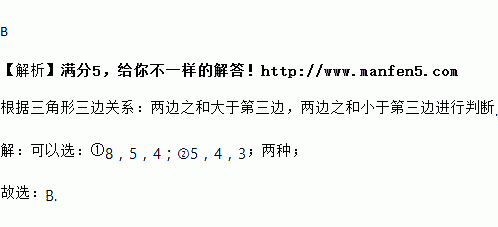 长为8,5,4,3的四根木条,选其中三根组成三角形,选法有( )