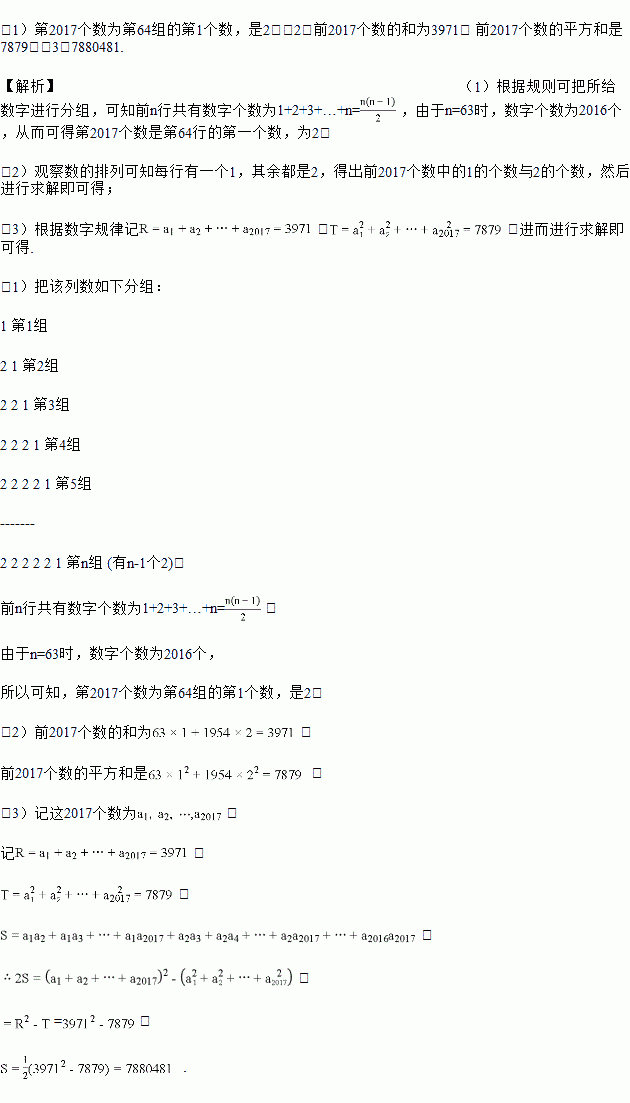 (2)前2017个数的和是多少?前2017个数的平方和是多少?