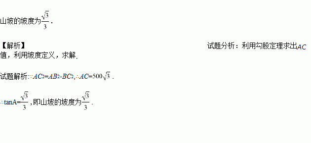 如图28-1-1-7,某人从山脚下的点A沿着斜坡走了1 000米到达山顶B点,已知山顶到山脚的垂直距离为500米,求山坡的坡度.