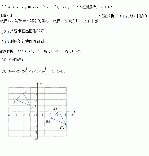 (1)写出经平移后△A1B1C1 点A1、B1.C1的坐标