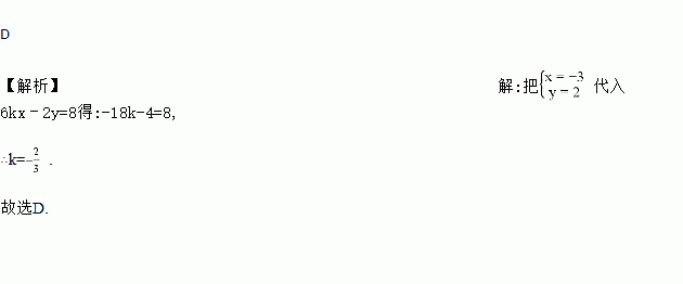 若方程6kx﹣2y=8有一组解,则k的值等于( )