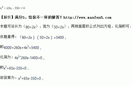 在一幅长,宽的矩形风景画四周壤上一条金色纸边,制成一幅矩形挂图,如果要使整个挂图的面积为.设金色纸片的宽为,那么写出的方程是________.