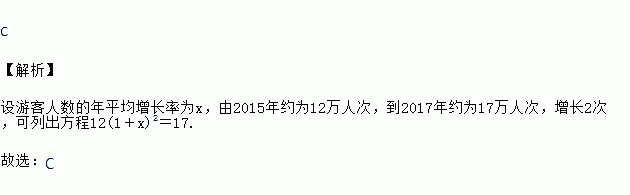 某旅游景点的游客人数逐年增加,据有关部门统计,2015年约为12万人次,若2017年约为17万人次,设游客人数年平均增长率为x,则下列方程中正确的是( )