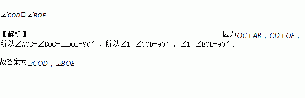 如图,OC⊥AB,OD⊥OE,图中与∠1互余的角是__________.
