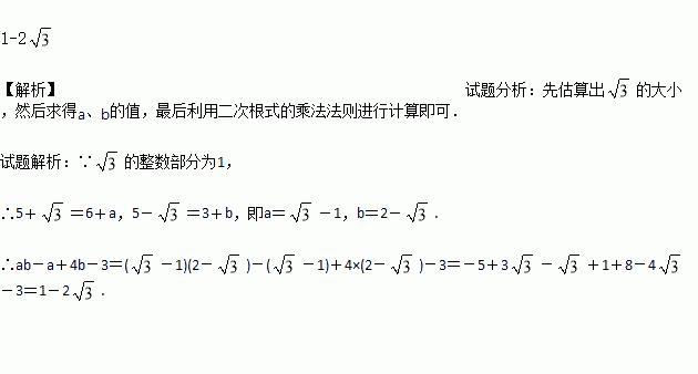 已知5+和5-的小数部分分别为a,b,试求代数式ab-a+4b-3的值.