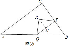 ②当点P在BC边上时,过点R作RH⊥PQ于点H,如图②,![]()