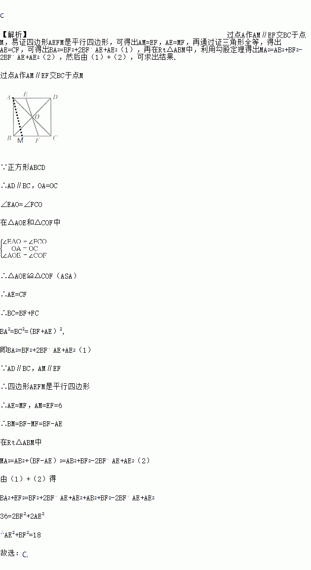 如图,在正方形ABCD中,对角线AC,BD交于点0,过点0的直线分别交边AD,BC于点E,F,EF=6.则AE2+BF2的值为( )